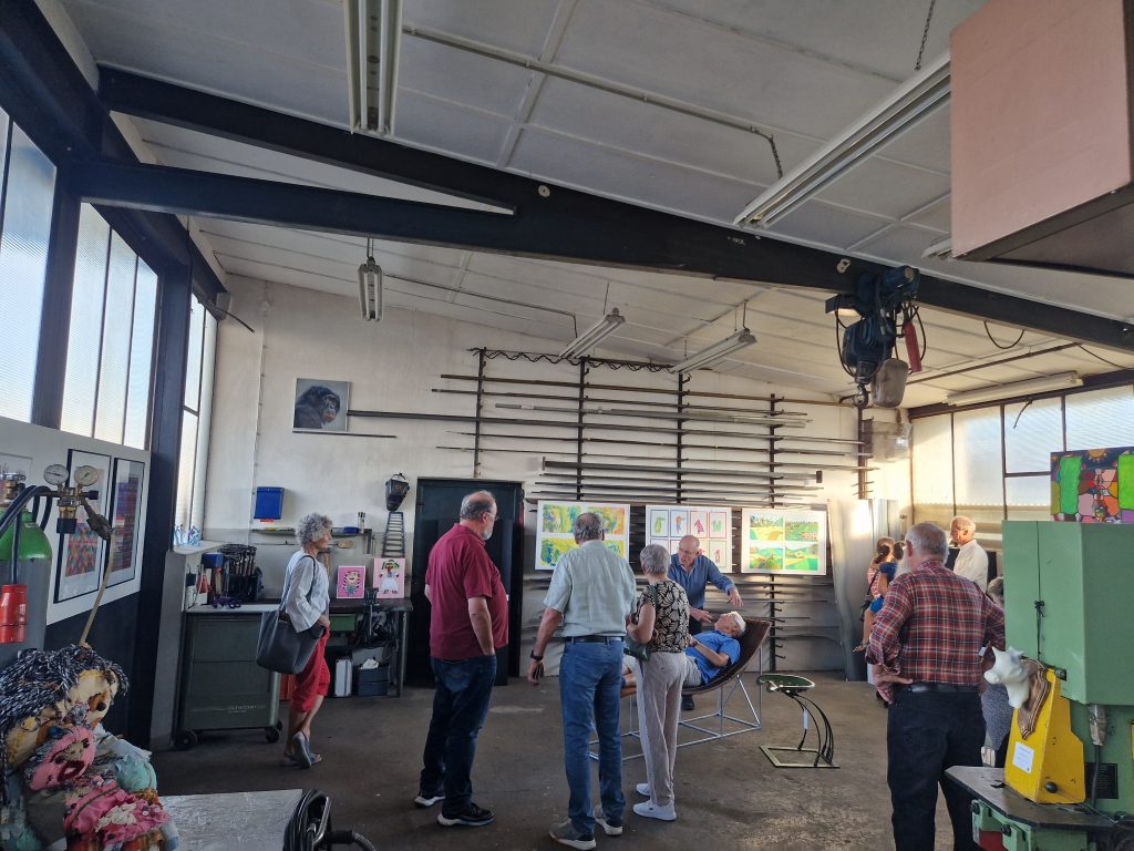 Bei der Hemminger Kulturnacht im September durften wir unsere Werke in der Schlossereo-Werkstatt von Eberhard Vollmer ausstellen: ein ganz besonderer Ort mit viel Atmosphäre! Es waren viele Besucher*innen da, die reges Interesse an unserer Kunst zeigten.